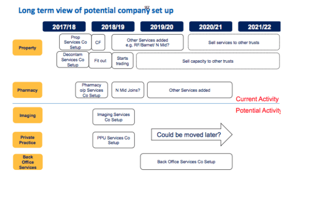 The Trust’s rationale for the creation of subsidiaries was that National funding for the NHS was forecast to grow annually at less than the 4% per annum a level that most commentators believe was required to maintain existing models of service delivery.