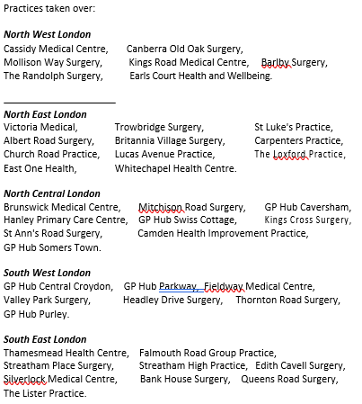 This briefing is not a detailed report of recent privatisation of healthcare in London, but rather examples of the type of privatisation that is occurring with links to details about the companies involved. If these examples are occurring in all five incipient ICSs (North West London -NWL, North Central London-NCL, North East London-NEL, South East London-SEL, and South West London-SWL) then they represent major changes in provision.