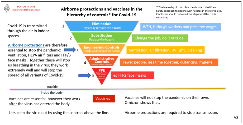 Categories health and safety Uncategorized The place of vaccines and airborne controls in the hierarchy of controls for Covid-19 Post author By docjon1415 Post date December 12, 2021 Tags health and safety ← Urgent union action needed to stop airborne transmission of Covid-19 in the workplace → Infection Control guidance and airborne transmission