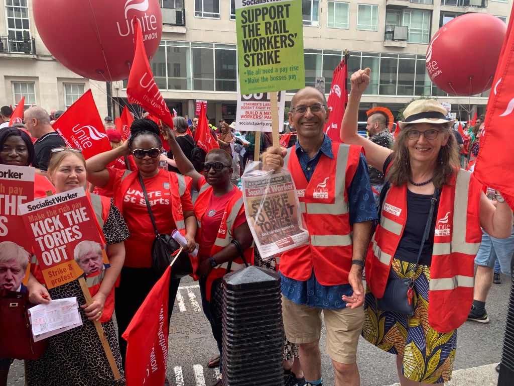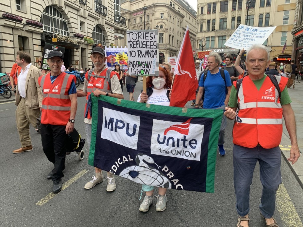 Doctors in Unite attended the massive June 18 demonstration against the cost of living crisis, low wages, fire and rehire, and other anti-worker practices like outsourcing.