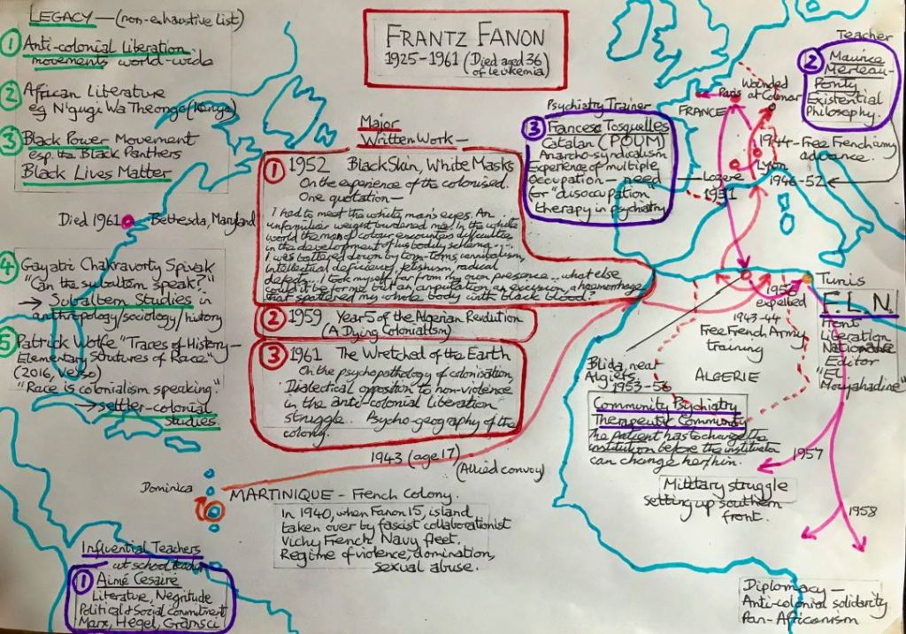 Frantz Fanon (20th July 1925 – 6th December 1961) was a psychiatrist and political philosopher from the French colony of Martinique. His works are influential in the fields of post-colonial studies, critical theory and Marxism. As well as an intellectual, Fanon was a political radical, Pan-Africanist, and Marxist humanist. He was concerned with the psychopathology of colonization and the human, social, and cultural consequences of decolonization.